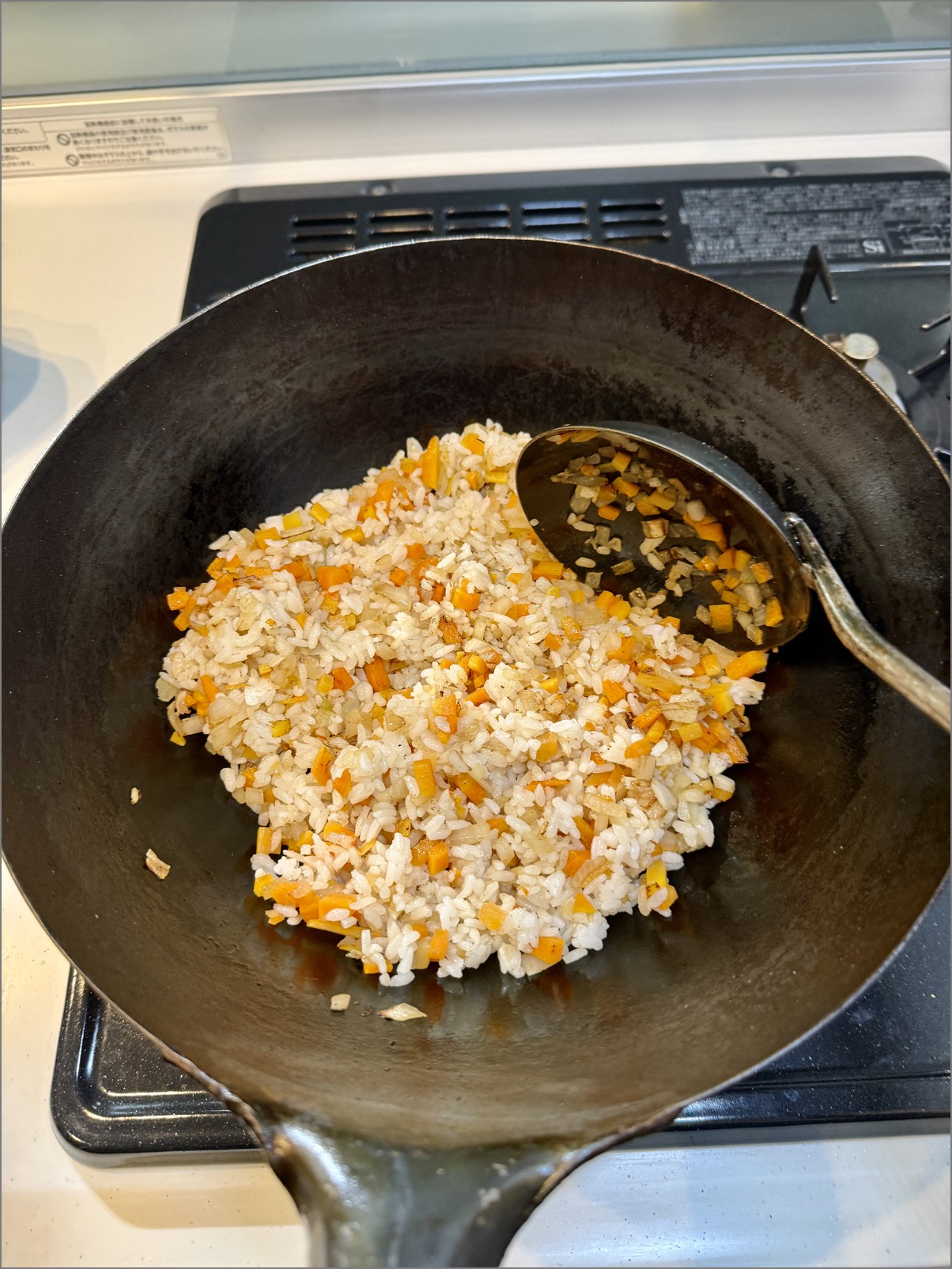 にんじんと玉ねぎも効いている。「みじん切り」よりちょい大きめの「粗みじん」というやつで、歯ごたえが残るサイズにしたけど、これがまた正解。