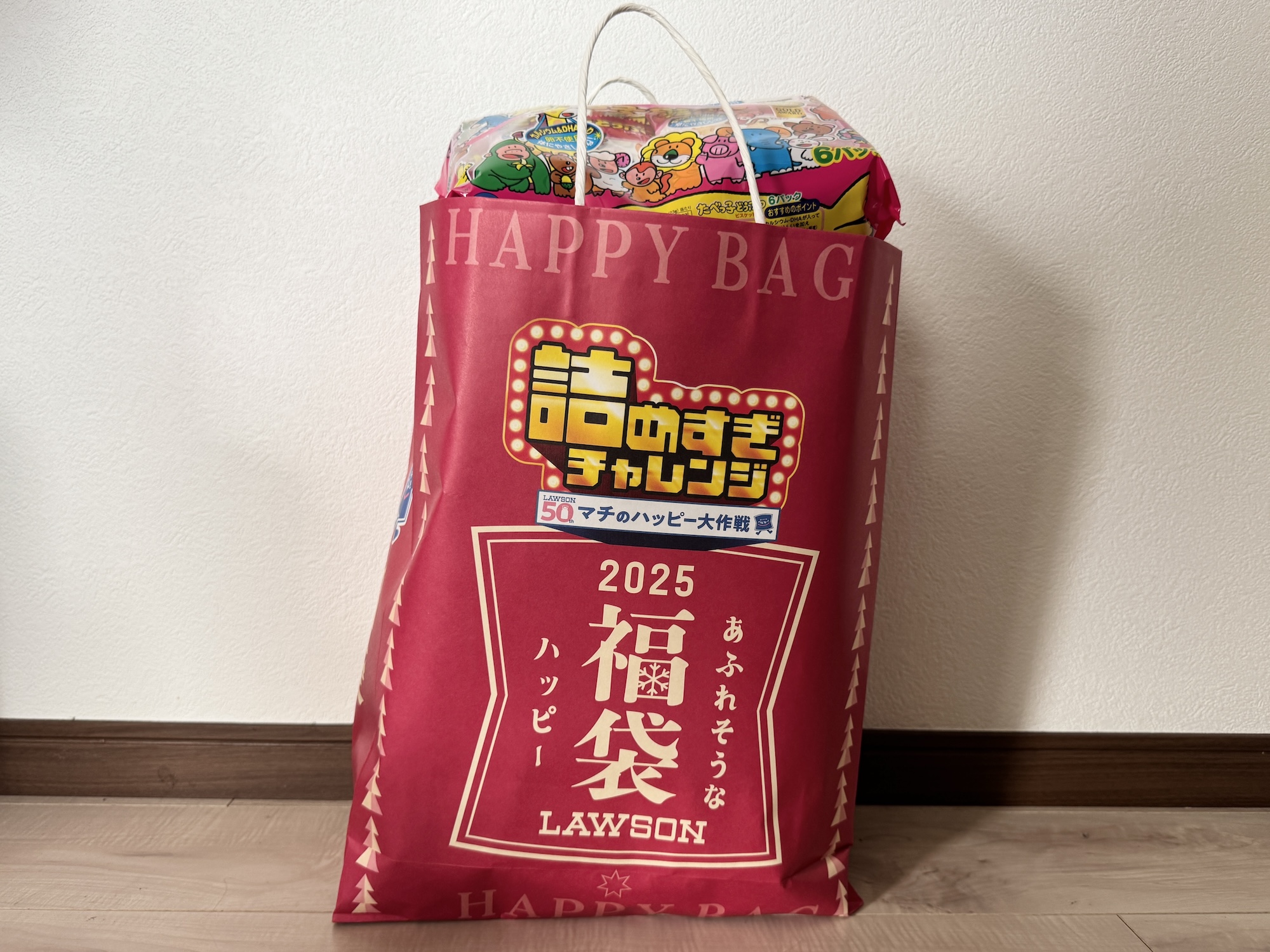 【本日発売】「ローソンの福袋」(2160円)があまりにパンパンに詰まってて、持って帰るのちょっと恥ずい
