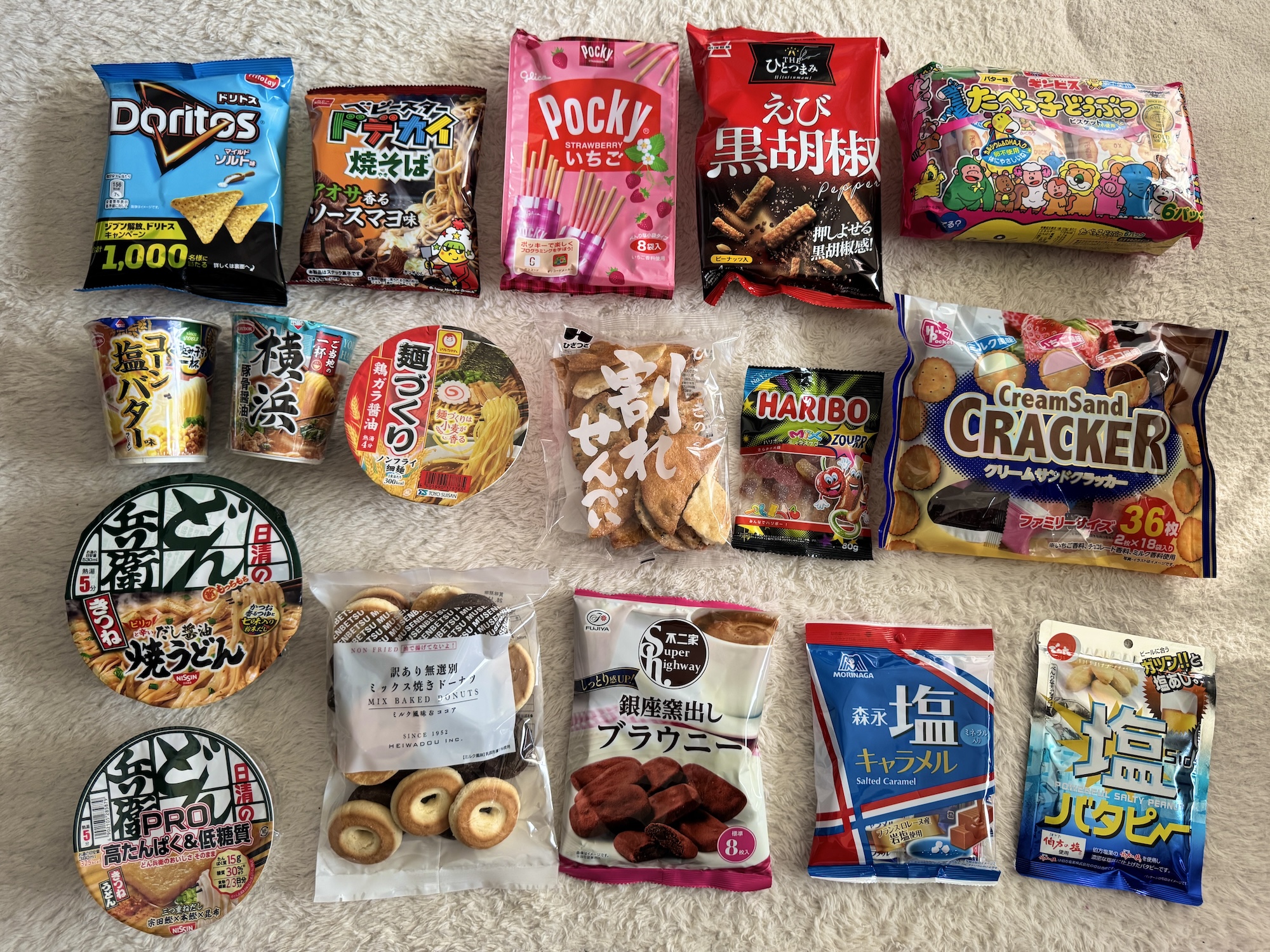 お菓子とカップ麺のみで構成された全17アイテムの総重量は約2.1kg。現在ローソン店頭に並んでいない商品も多く、元の価格は計算しようがないが、おそらく合計4000円前後なのではなかろうか。