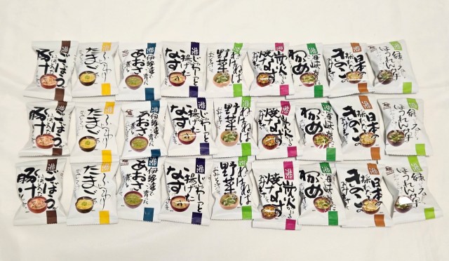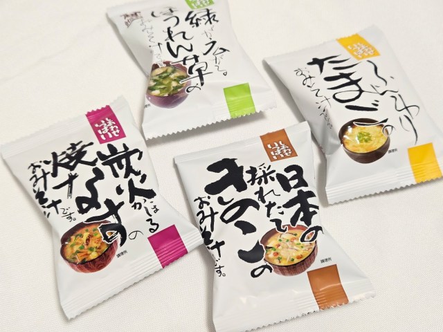 昨年はおみそ汁系が2種だけだったけど、今年は「味噌汁お得セット」が入ったことで、9種類ものおみそ汁を飲み比べすることが可能に! もっといろいろな味を試したいと思っていたから、この変化はとても嬉しい。