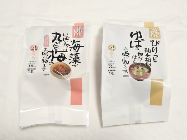他には、おみそ汁より少しサッパリしている、お吸い物が4食ずつ入っていて、
