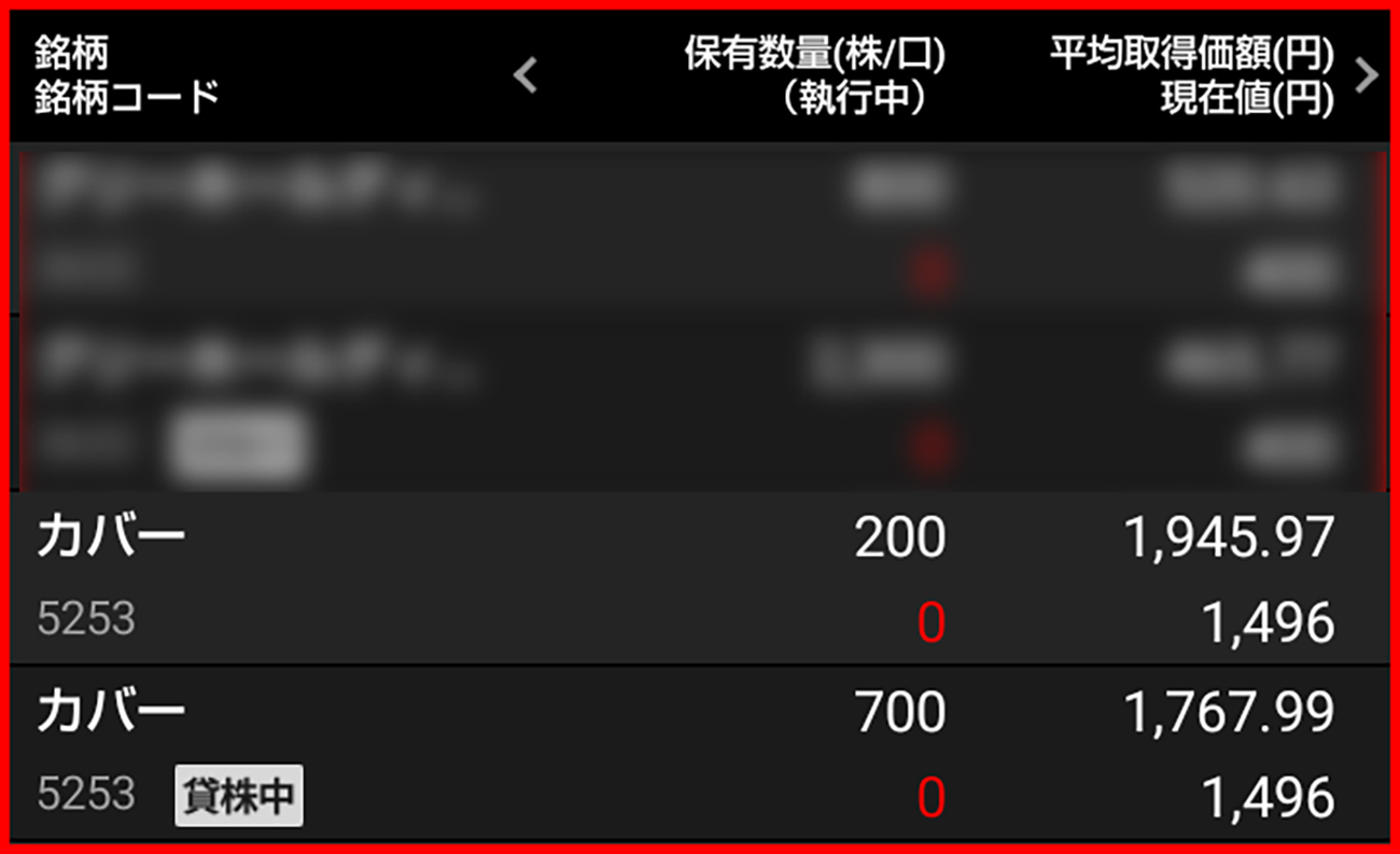 +約76万3700円だった。実はカバーは2024年の春から秋くらいまでも大きく下がっていた。その期間に購入した平均取得価格1652円の1200株を2024年末から2025年頭に利確したのである。一番利益が出た取引は100株で16万4800円のプラス、2024年11月も入れると、合計約101万1200円の利益になっていた。