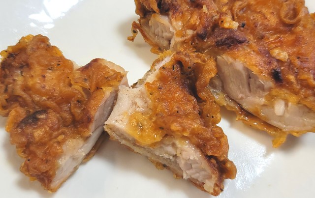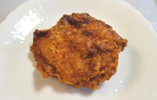 紙袋から皿に出したチキンは、他店で言うならケンタッキーのものよりはやや小さめだが、見るからに丁寧に揚げられた衣をまとい、食欲をそそってやまない。いざパーティの幕開けとばかりに、思い切りかぶりつく。