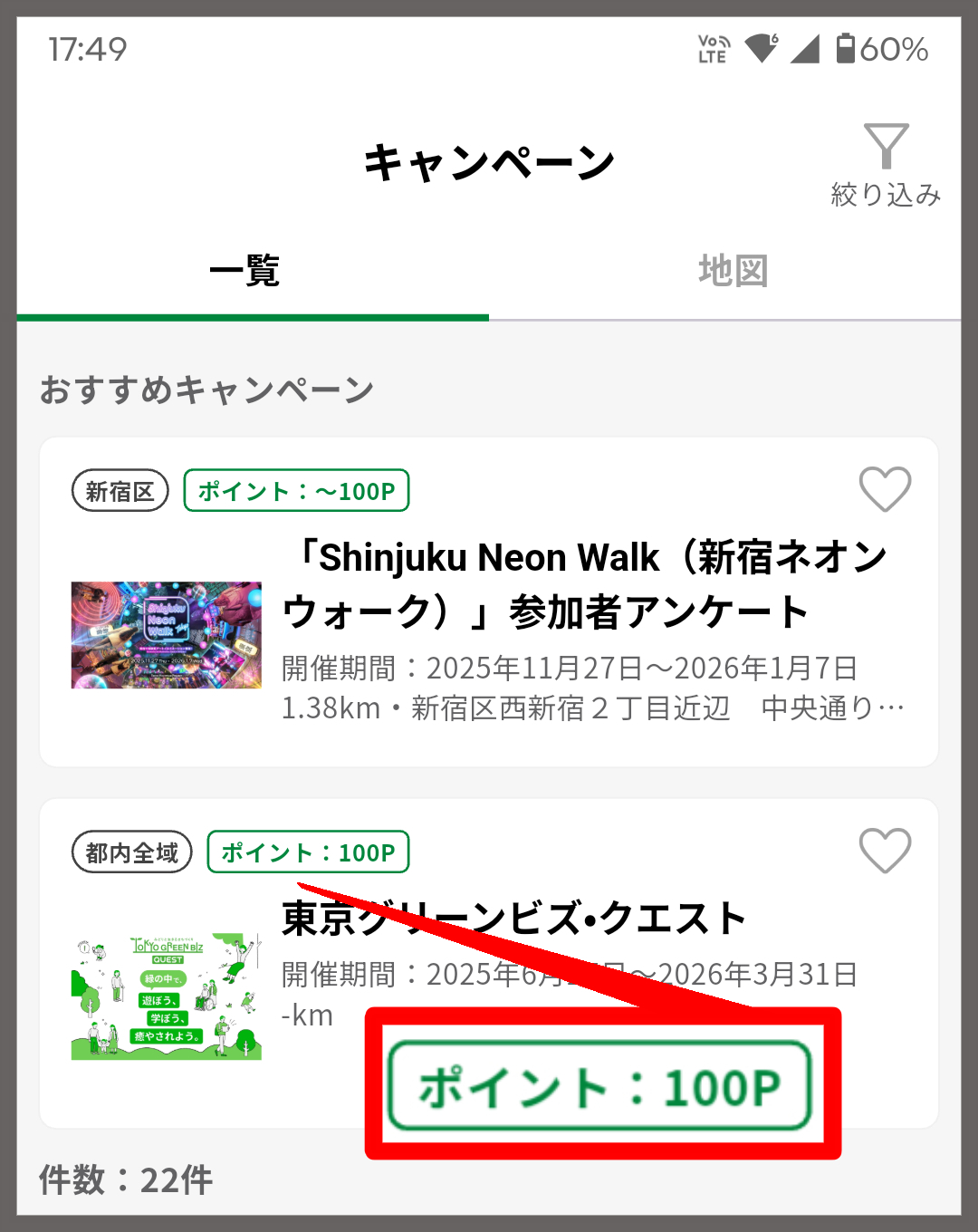 それで現段階でこのアプリでできることはほとんどない。実施中のキャンペーンに参加してポイントを獲得することもできるけど、近場では数が限られるし、そもそもイベントそのものがそう多くない。