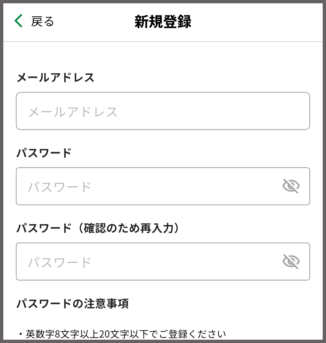 メールアドレスとパスワード(再入力も)を入力すると……。