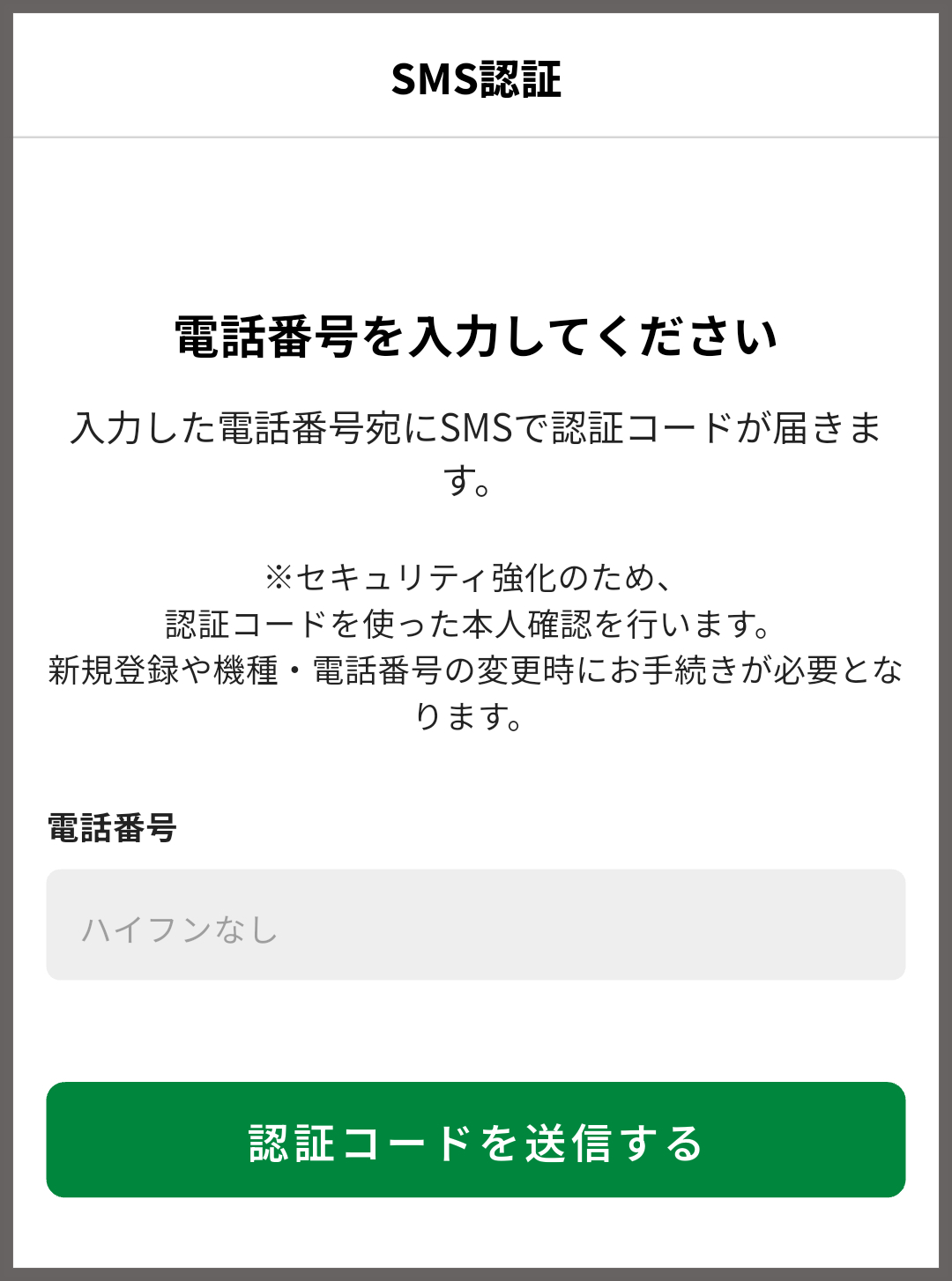 続いて電話番号を入力して、その番号に認証コードを送信する。