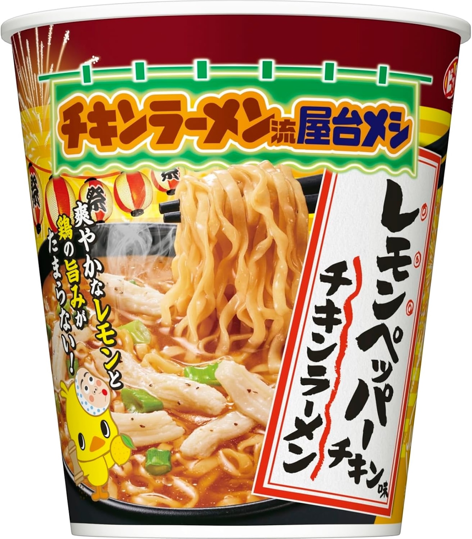 チキンラーメンビッグカップレモンペッパーチキン味は、チキンの旨みにレモンの爽やかな酸味とペッパーの辛みを加えたスープが特徴だ。グリルチキンの香ばしい風味がやみつきになり、鉄板で炒めたような香ばしさが食欲を刺激するぞ。