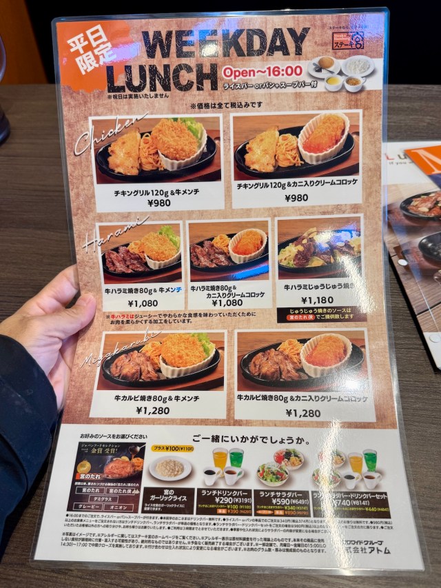 もちろん迷うことなく店内へ。店員さん曰く、ステーキ宮では2025年11月18日から「平日限定ランチメニュー」がスタートしたらしい。もしかしてステーキ宮が一気に身近になったのでは……詳しく紹介したい!