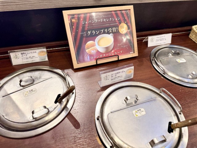 とくにスープバーの「コーンポタージュスープ」は、ジャパンフードセレクションでグランプリを受賞した実力派。先に紹介しておくと、ひと口飲めば濃厚な甘さが広がって、コーンの旨みもしっかり感じられる。