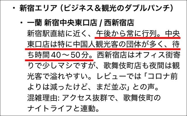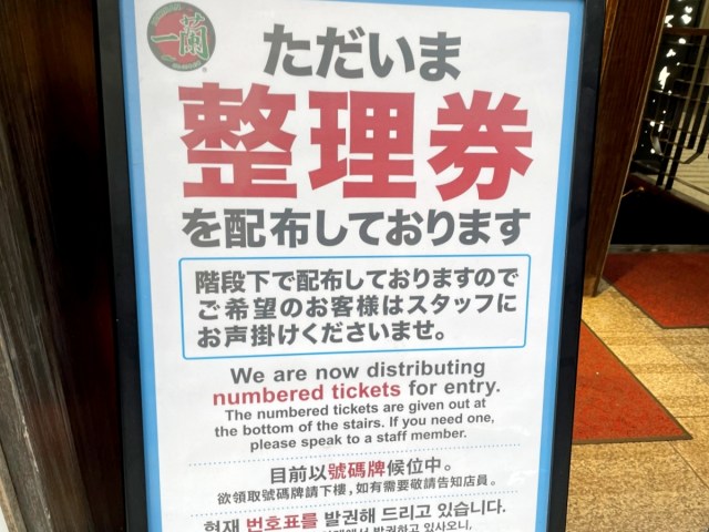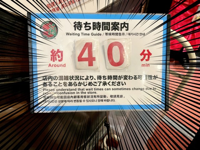 AIに聞いてみたところ「午後から常に行列。特に中国人観光客の団体が多く、待ち時間は40~50分」だという。数ある一蘭の中でも、特にインバウンド需要が爆発している店舗と言っていいだろう。