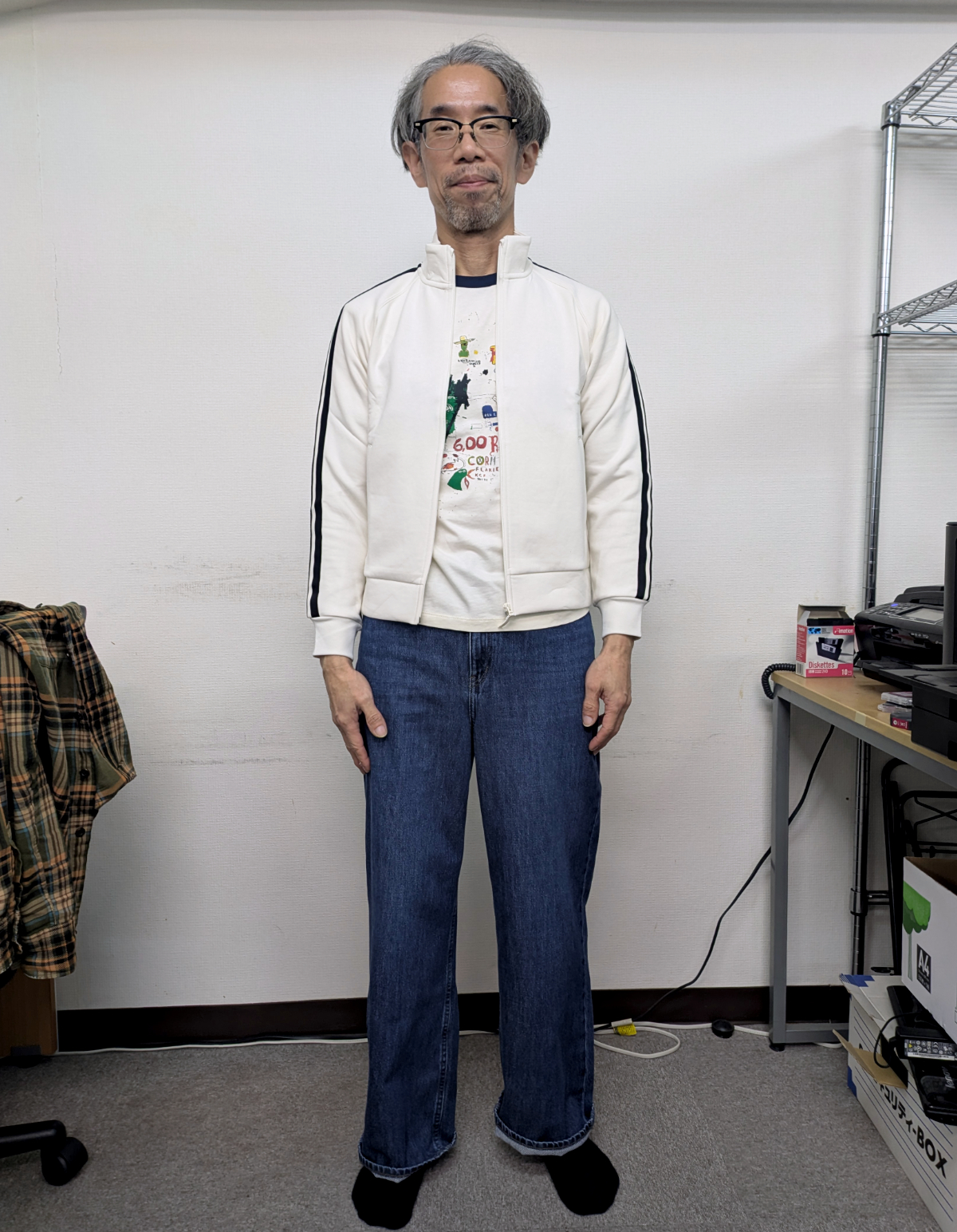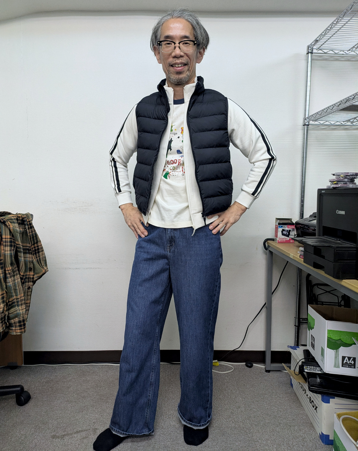 もっとキツキツになる気がしてたけど、全然快適。むしろ普段着コレでいいじゃない? とさえ思える。スウェットの袖丈が少し短いけど、それはそれで可愛らしい印象。