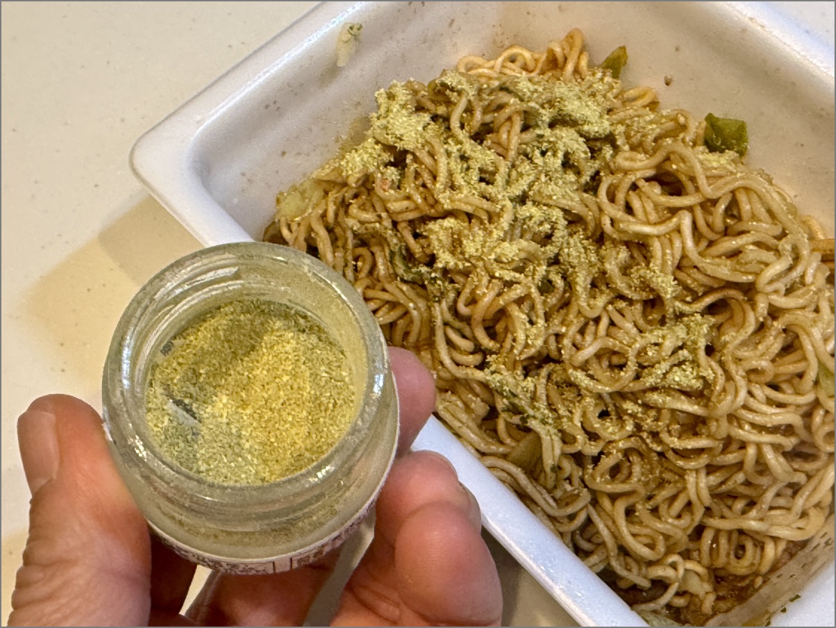 「これね、入れるの、山椒だけなんですよ。普通に作ったペヤングに、山椒をふりかけるだけなんです」