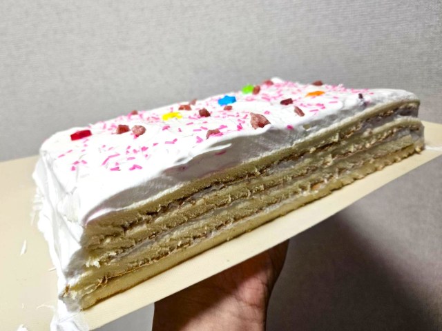 いきなりだが、目の前に超巨大なケーキがある。ちなみに横幅約60センチ、高さは約5センチ。一般的なカットケーキに換算すると、30人前はあろうかという規格外のデカさだ。