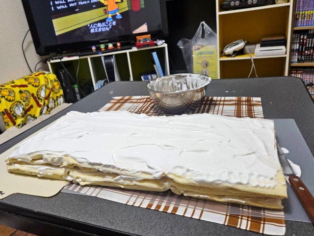 改めてこの量が1500円で作れちゃうのはヤバい(笑)。これ、大人10人でもギリ食べ切れるかどうかだぞ。残りは冷凍保存することにしよう。当分ケーキには困らなそうだな。
