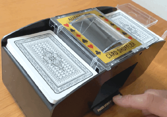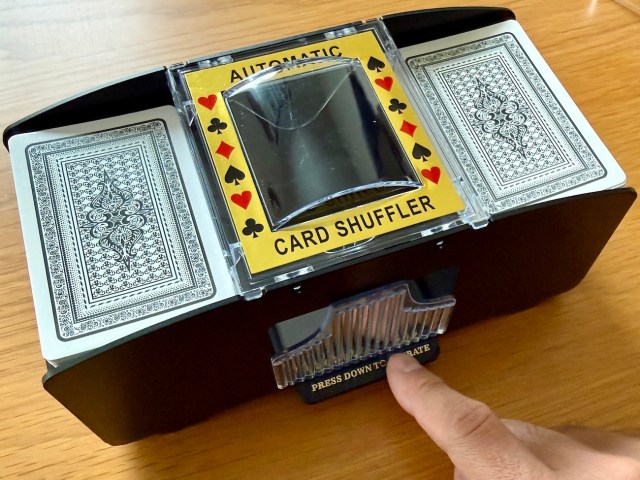 快感……超スピードでトランプがシャッフルされていく。なんとなく工場見学の気分すら味わえる。混ぜたカードがそのまま中央のトレイに積み上がる仕様なのも良い。配る準備まで一瞬で完了する。