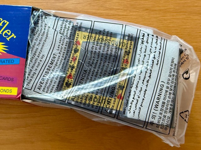 使い方は簡単で、トランプを半分ずつ両サイドにセットしてからレバーを押すだけ。100均ショップで買ってきた新品のトランプをさっそく混ぜてみることに。開封直後のカードは数字順でちゃんと並んでいた。