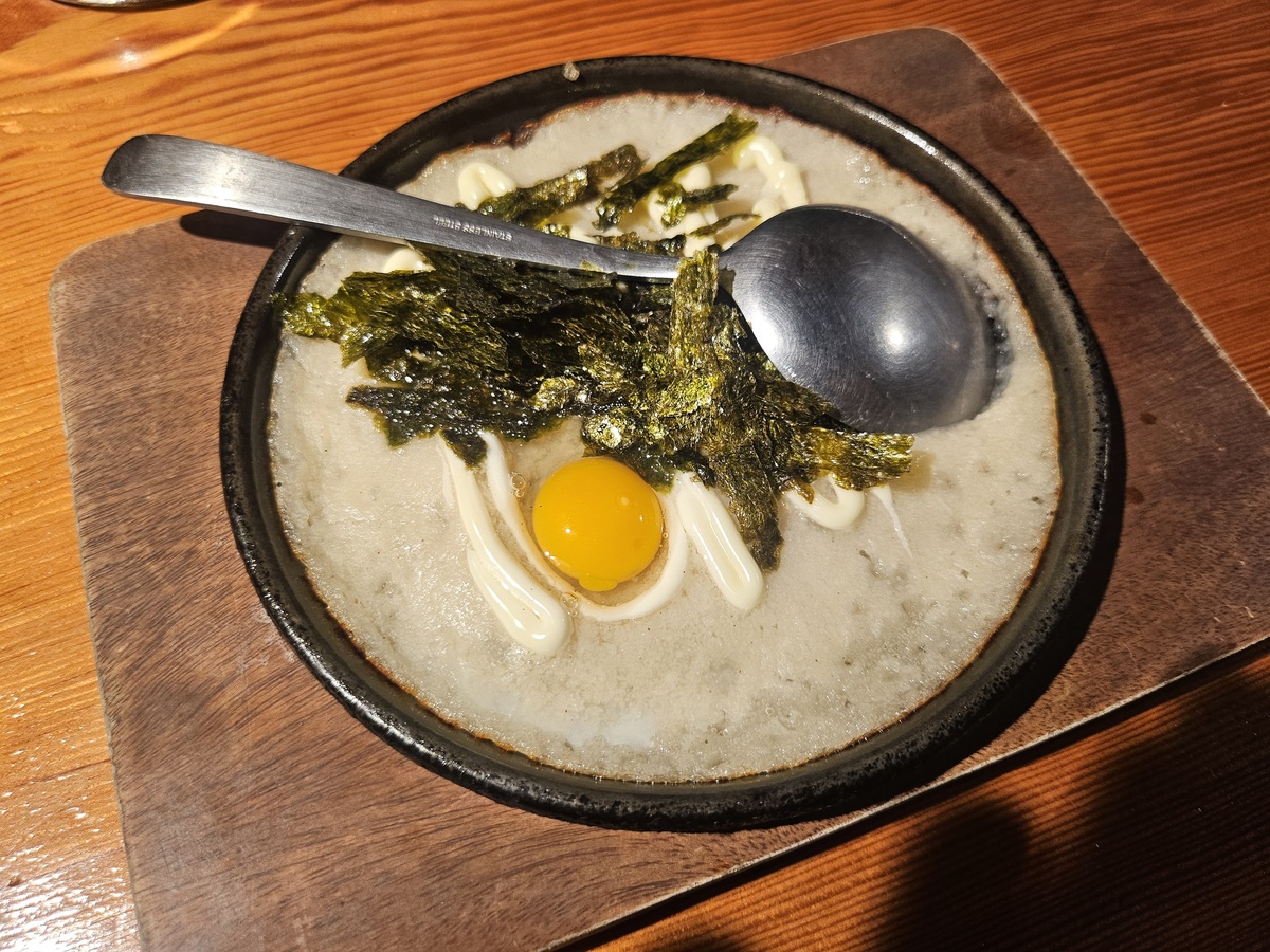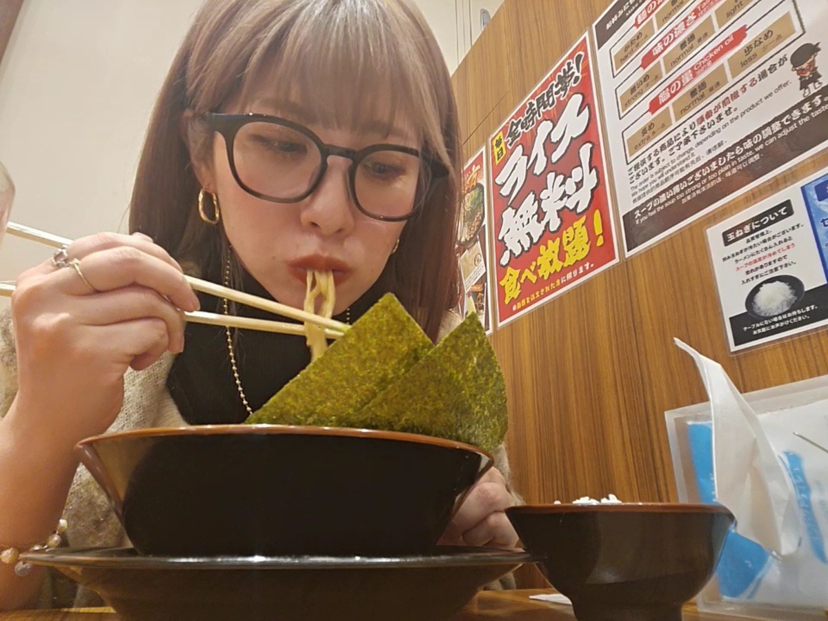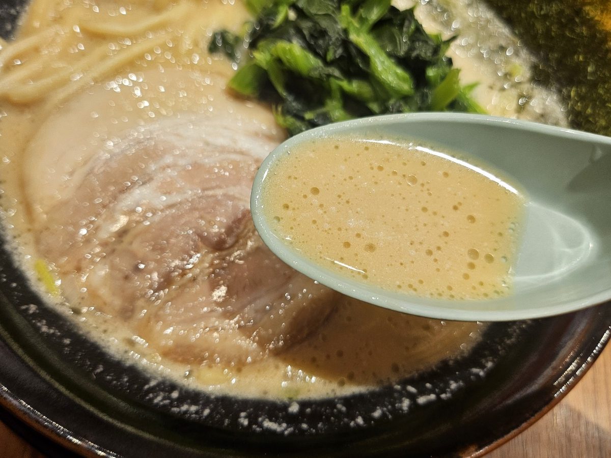 スープをすすると……んんんん〜! 最高‼︎ アルコールの入った身体に家系の塩分と脂が染み渡るこの瞬間。年末に一番必要なのは医者でも栄養士でもなく、たぶん家系ラーメンだ。