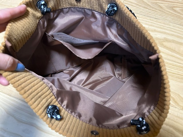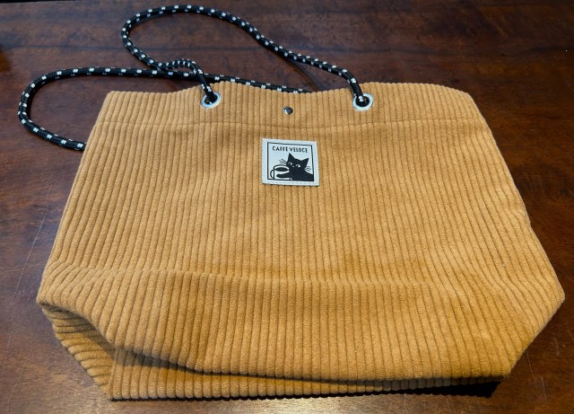バッグもたっぷり入るサイズで、紐が長いため肩がけができるし、内側にはちょっとしたポケットがついているしで使い買って抜群。やはり猫のロゴ入りで言うことなしだ。