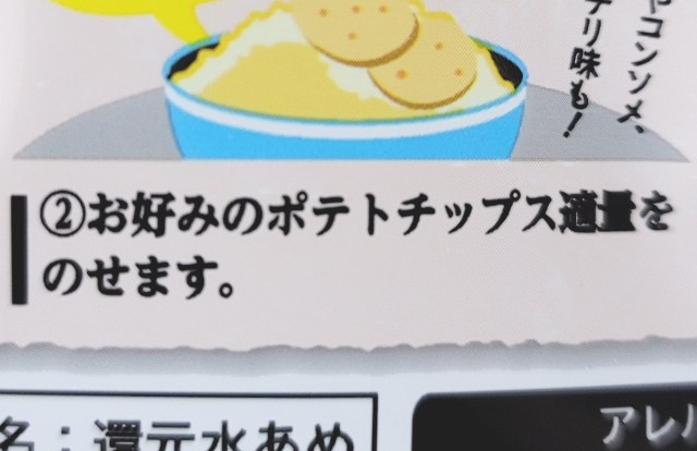 そして言われた通りに、うすしお味のポテトチップスをそこへ投入する。「ポテチめし専用調味料」に全く疎い身としては、ただ説明に従うまでである。
