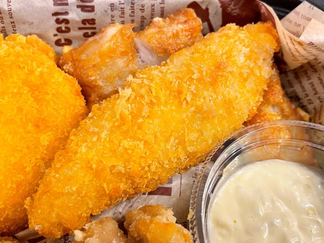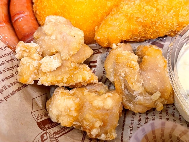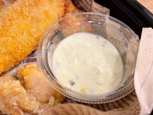 Bセット(税込1280円):ロースカツ、パリパリチキン、ソーセージ(3本)、フライドチキン(3個)、フィッシュフライ、クリームコロッケ(カニ入り)、クリーミータルタルソース