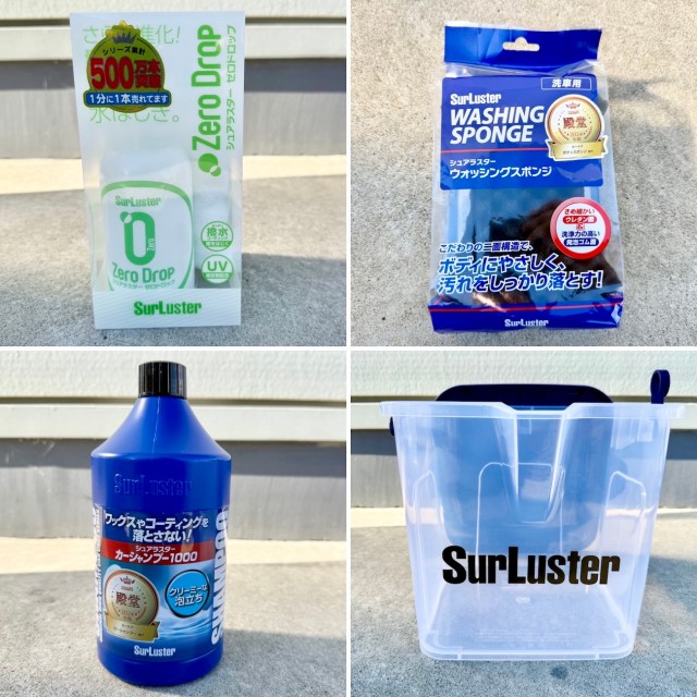 注目はやはり「シュアラスター」のアイテムがセットになっている点。カーケア界ではおなじみのブランドで、とくに 「ゼロドロップ(S-115)」 は “1分に1本売れている” と言われるほどの超人気コーティング剤だ。