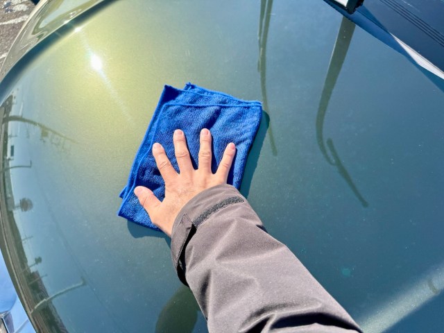 Amazon7冠「洗車タオル」の吸水力が異次元過ぎる / タオルをボンネットに置いて引っ張るだけで一発吸水!