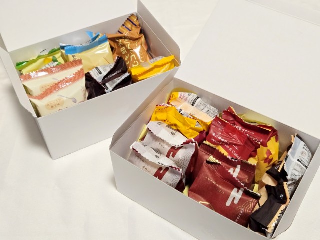 2026年の八天堂福袋は、ゴールド(40個入り8800円)、プラチナ(20個入り5400円)、ブラック(12個入り4000円)と分かれていて、今回は真ん中のプラチナを購入した。