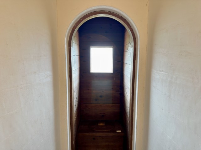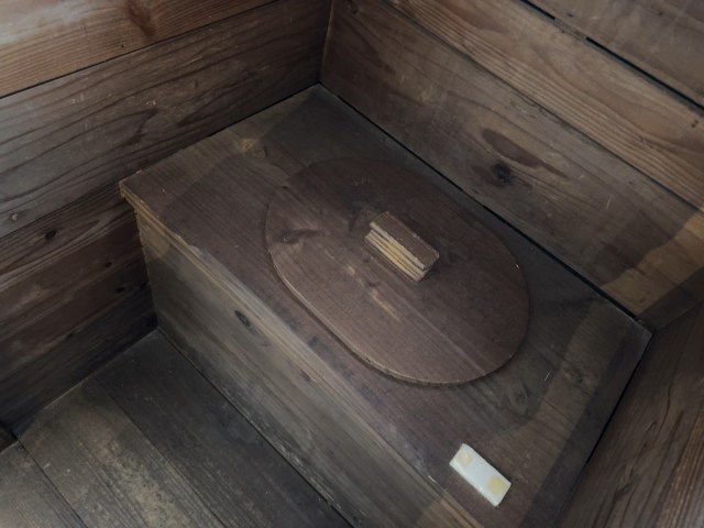 中世のトイレである! といっても原始的なもので、壁の外に少しせり出すように便座が設けられ、穴から崖下の地面に垂れ流す仕組み。