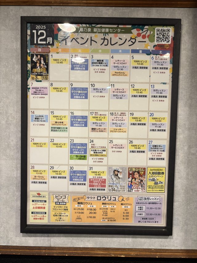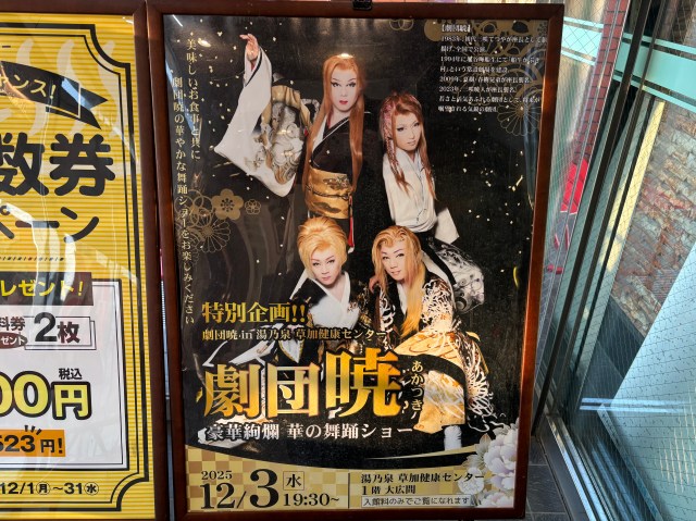 お風呂とご飯だけでも十分なのだが、草加健康センターの恐ろしいところは、無料の歌謡ショーやモノマネショー、100円ビンゴ大会……など、毎日のようにイベントが開催されている点。