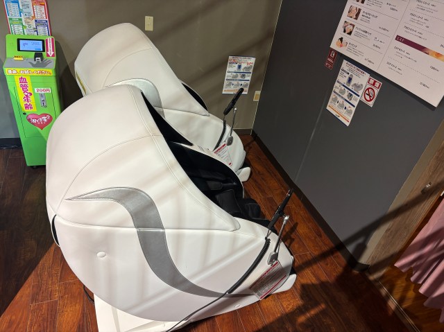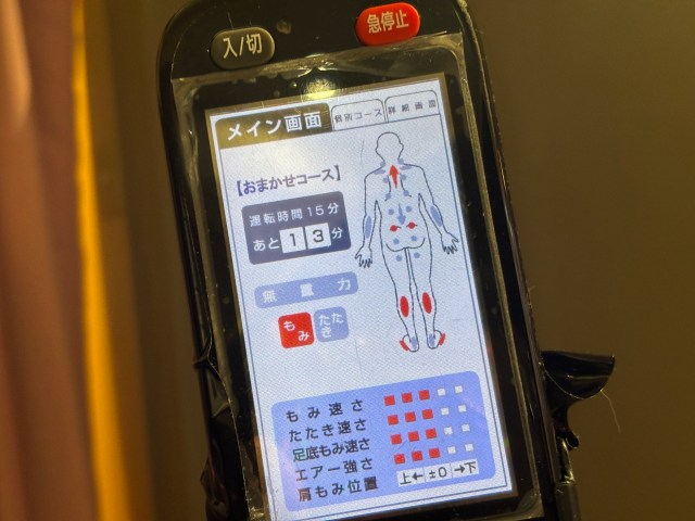 まだお金が残っていたので、ダメ押しで15分の300円の無重力マッサージチェアで全身のコリをほぐした。