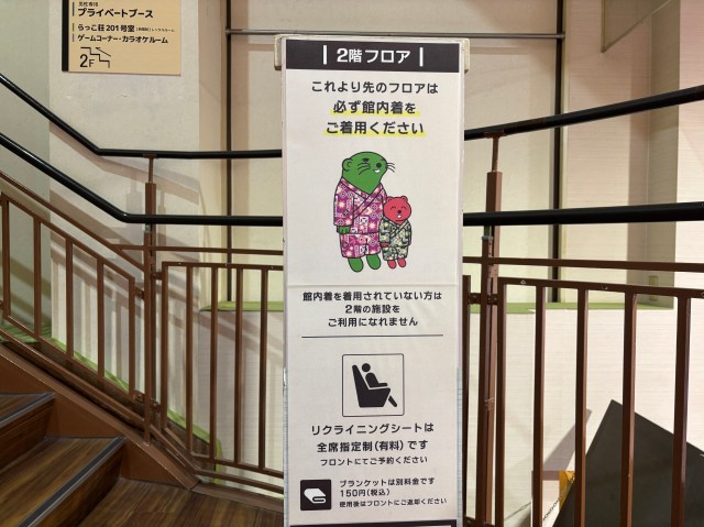 温泉でメイクと日頃の疲れを落としたあとは、ゆるっとした館内着に着替えて、2階のリラクゼーションエリアへ。