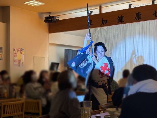 この日は大衆演劇の「劇団暁」の舞踊ショーが無料で見られる日だった。