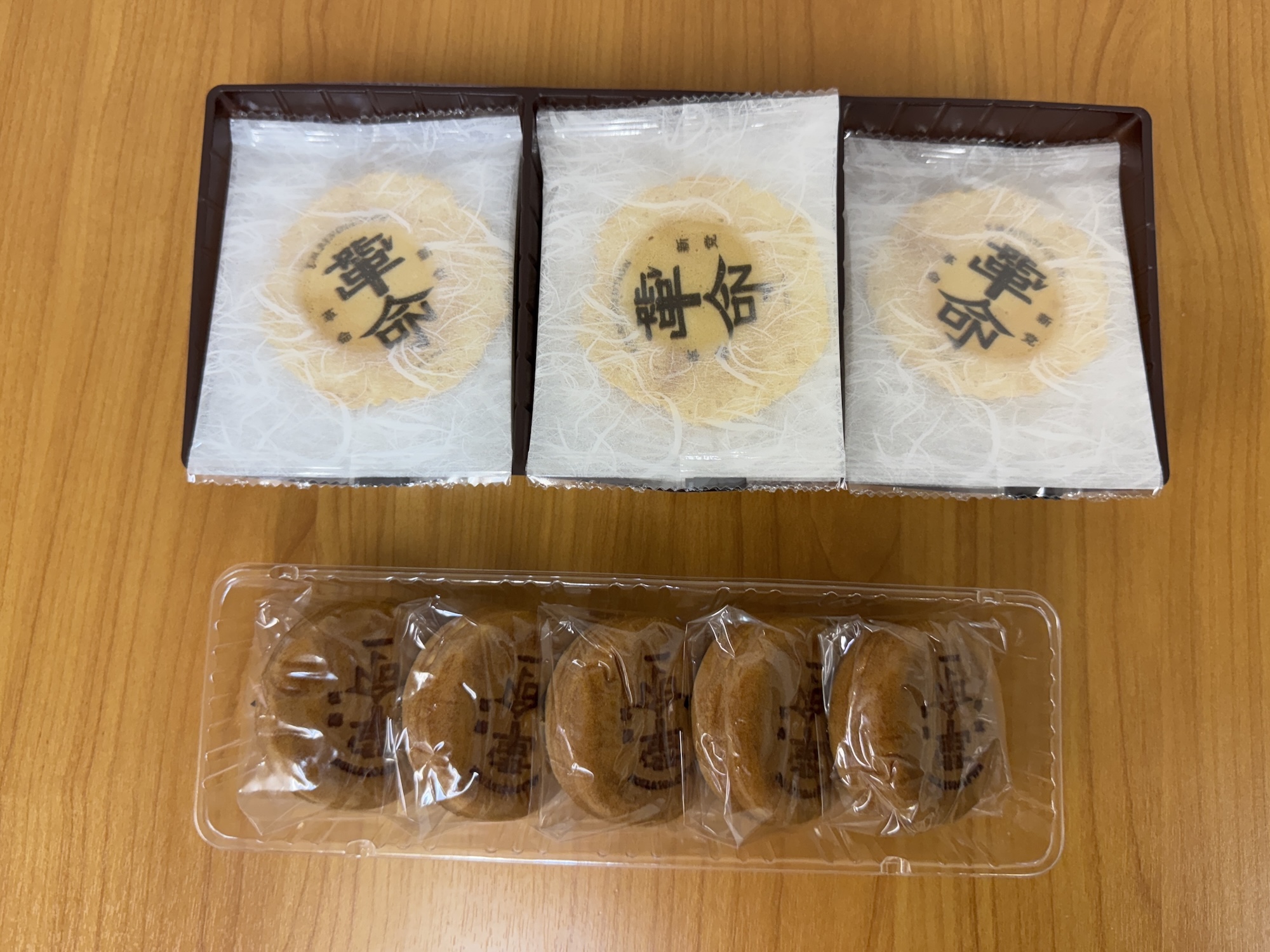 東京へ持ち帰った『西川総裁まんじゅう』と『西川総裁せんべい』。