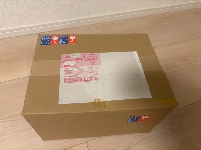 数日後、ずっしり重たい段ボールが到着。これは多分、瓶商品が多そう。