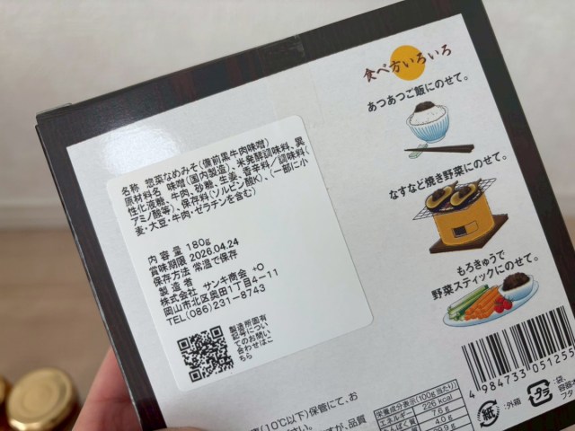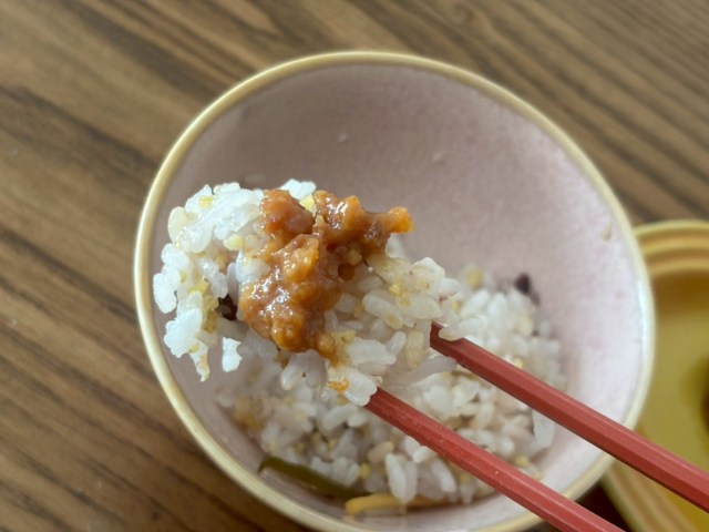 パッケージには、なすや野菜スティックにも合うと書いてあるが、私の脳内ではすでに焼きおにぎりが完成している。