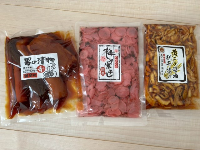 漬物類は、どれも私好みで素直に嬉しい。ただ、内容量がそれぞれ250g〜300gと、なかなかのボリュームだ。