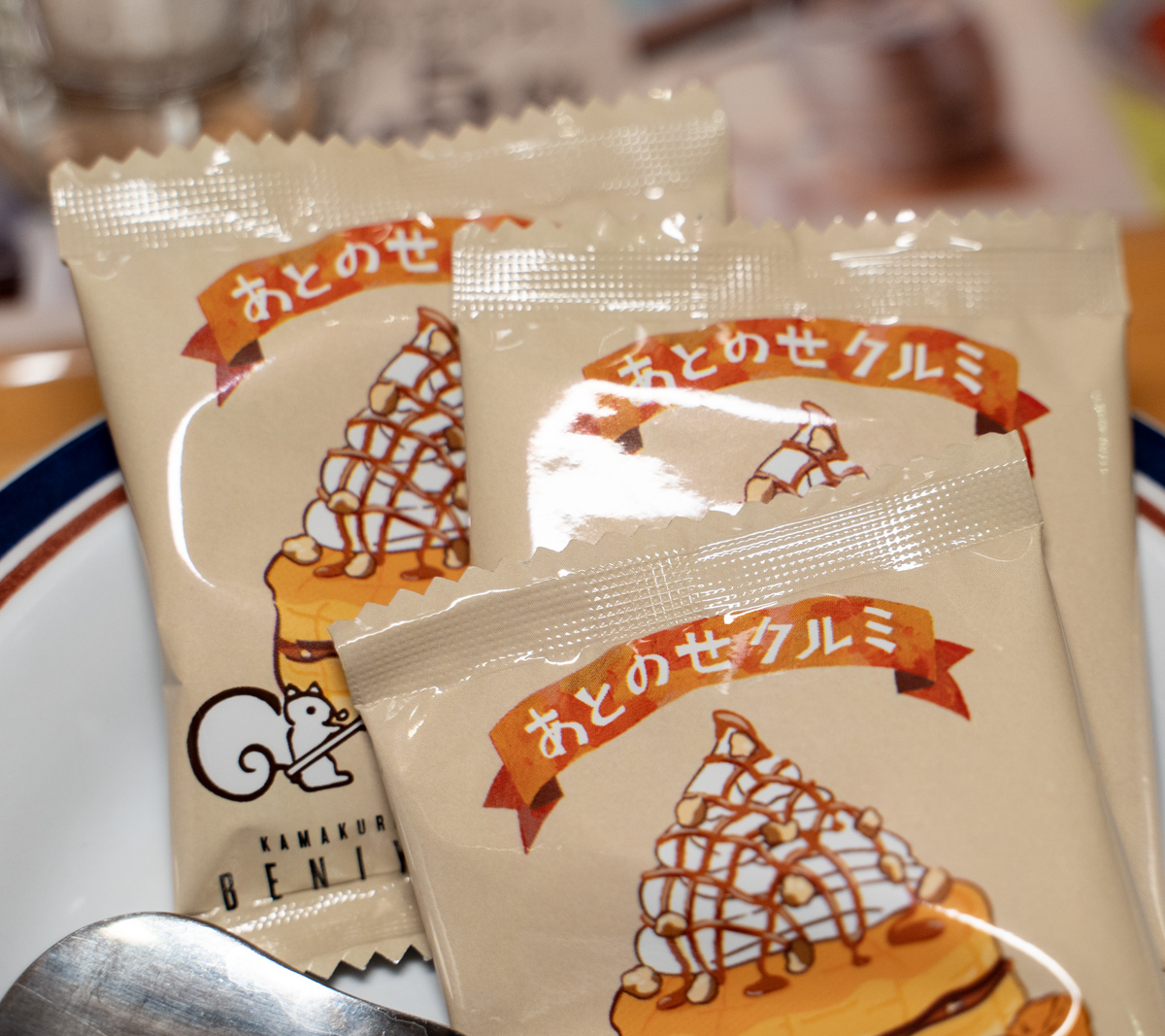 さて、今回のコラボメニューはトッピングのクルミが特徴的だ。そのクルミだが、個包装で別に提供される。
