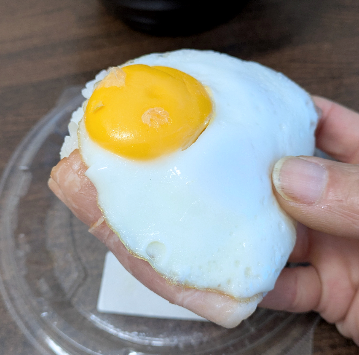 具材の入ったおにぎりはどれも大きくて食い甲斐アリ。ベーコンエッグで白飯を握るという大胆なアレンジも面白い。