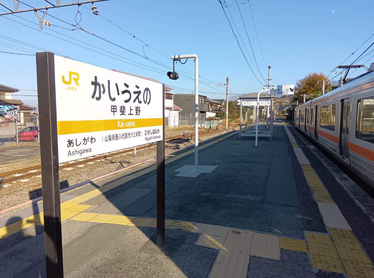 うまく接続できれば新宿から1時間50分くらいでこの景色にたどり着けるのは良い。そんな単線の景色に心が洗われながら甲斐上野駅に到着。色々あったけどもう着いたようなもんですな。