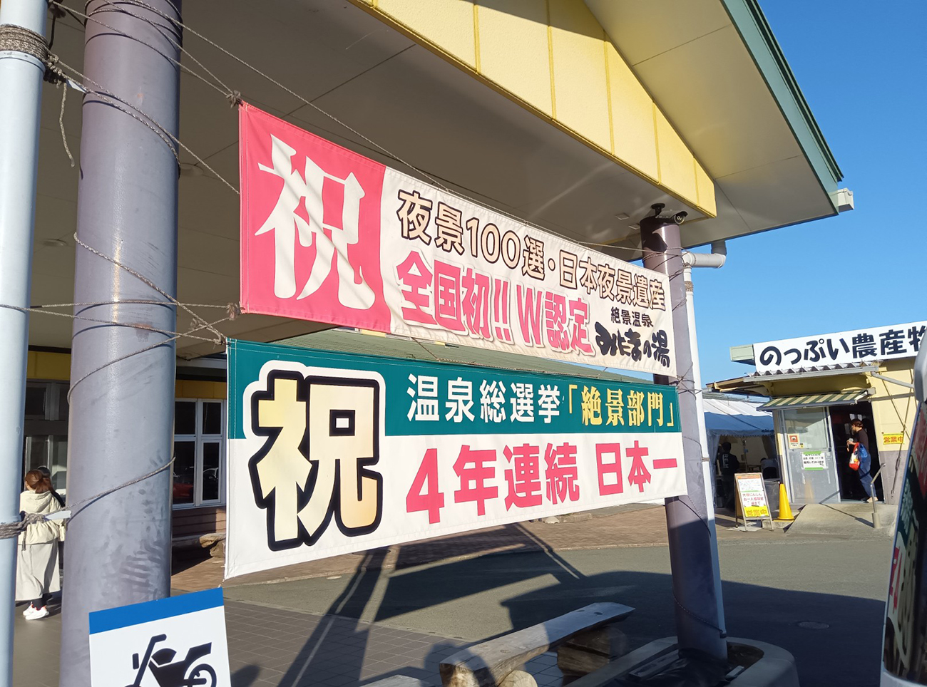 入口に掲げられた文言によると、温泉総選挙「絶景部門」で4年連続日本一を獲っているのだとか。また、アニメ『ゆるキャン』や『へやキャン』にも登場していて聖地としても知られている場所のようだ。