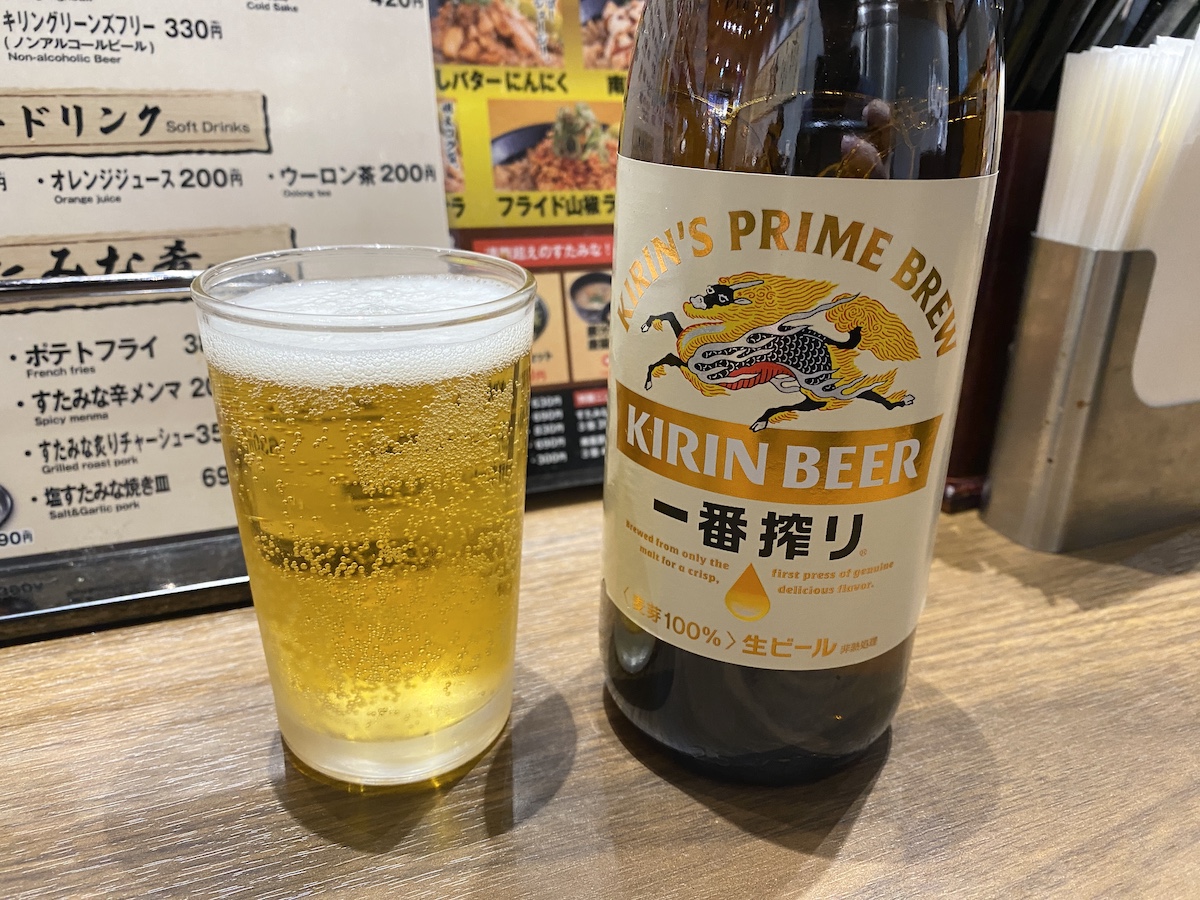 せっかくの忘年会なので、ビールをキンキンに冷えてる瓶(500円)にしちゃおう。でもって、ひとまず頼んだのが……