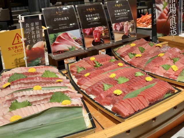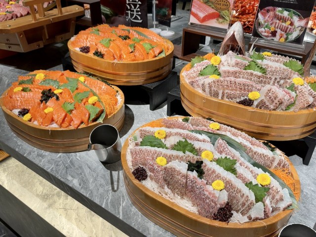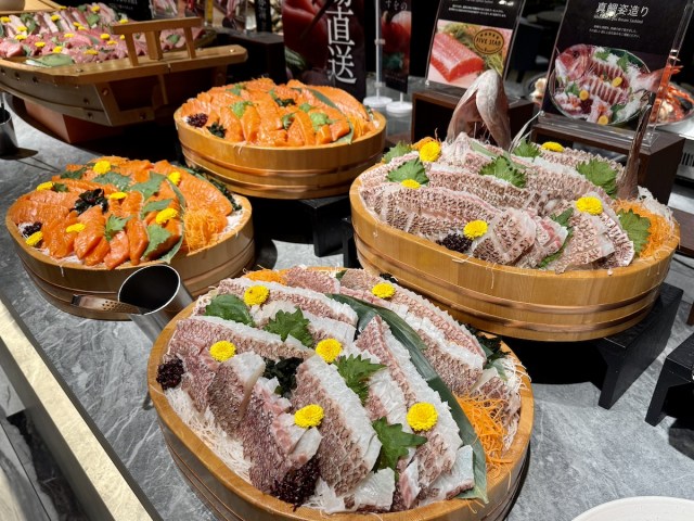 ひとつひとつの切り身が分厚い! つやつやと輝く刺身は、バイキングとは思えないクオリティだ。