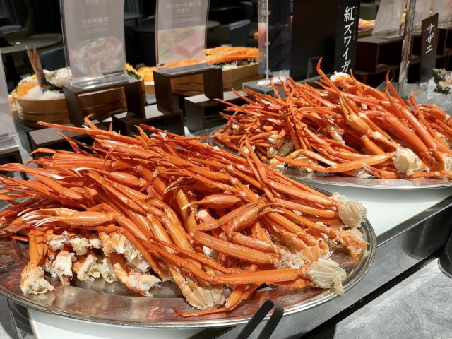すぐ近くには紅ズワイガニの脚のボイルが並ぶ。そのままでもいいし、卓上で蒸してもいいとのこと。