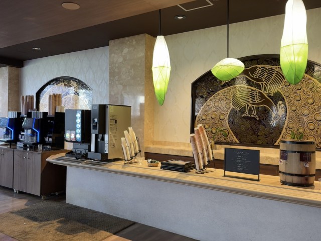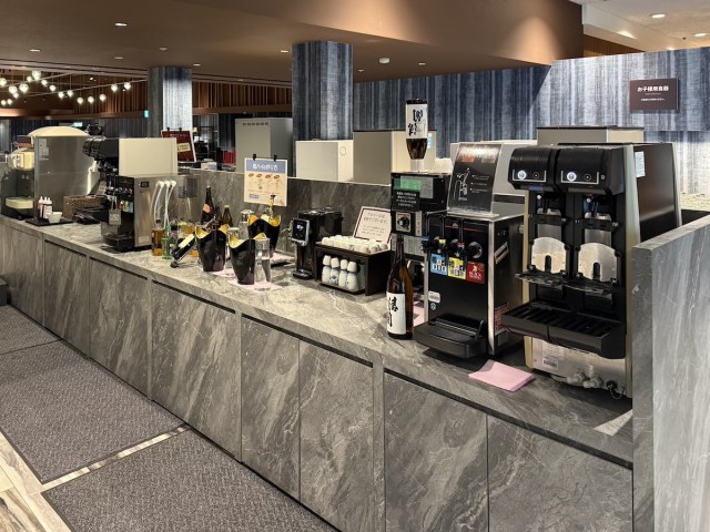 カウンターにはコーヒー、紅茶、ジュースなどのソフトドリンクがセルフサービスで並ぶ。さらに視線を横にすべらせると……