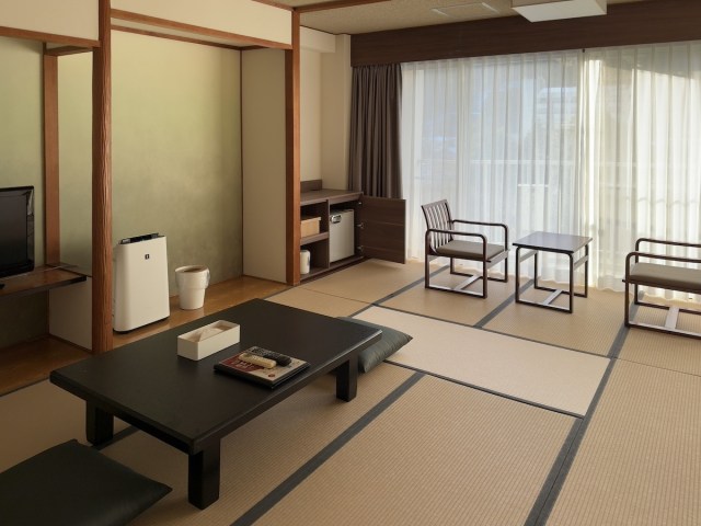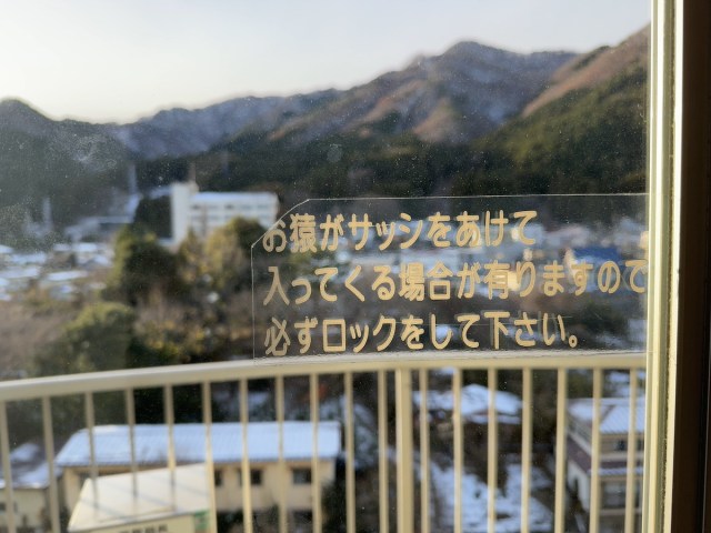 部屋も広々として新しい。バルコニーからは市街地が見渡せた。お猿が入ってくるので鍵を閉めるようにという注意書きがあり、熊頻出の危険地帯から来た筆者は「この辺りじゃ熊に飽きたらず猿まで!?」と身を引き締めた。
