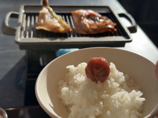 ・朝には干物をあぶって