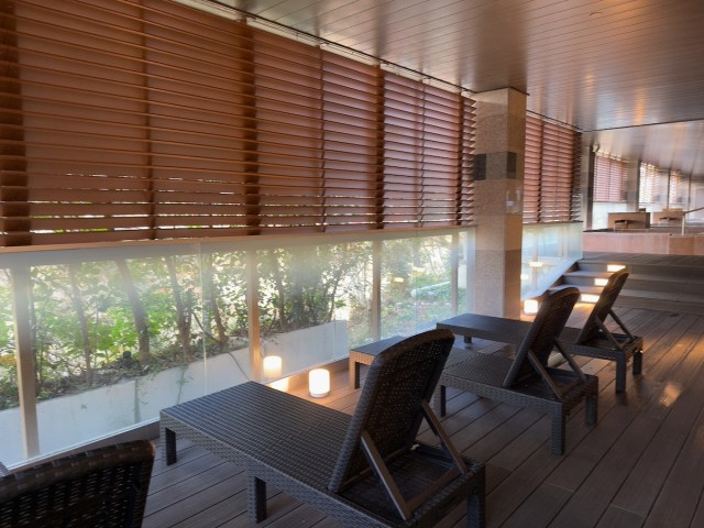 特筆したいのは男女入替制の大浴場だ。とくに回廊型の「霧降の湯」には開放的な半露天エリアがあり、昼は木々の緑、夜には街明かりを見ながら入浴できる。