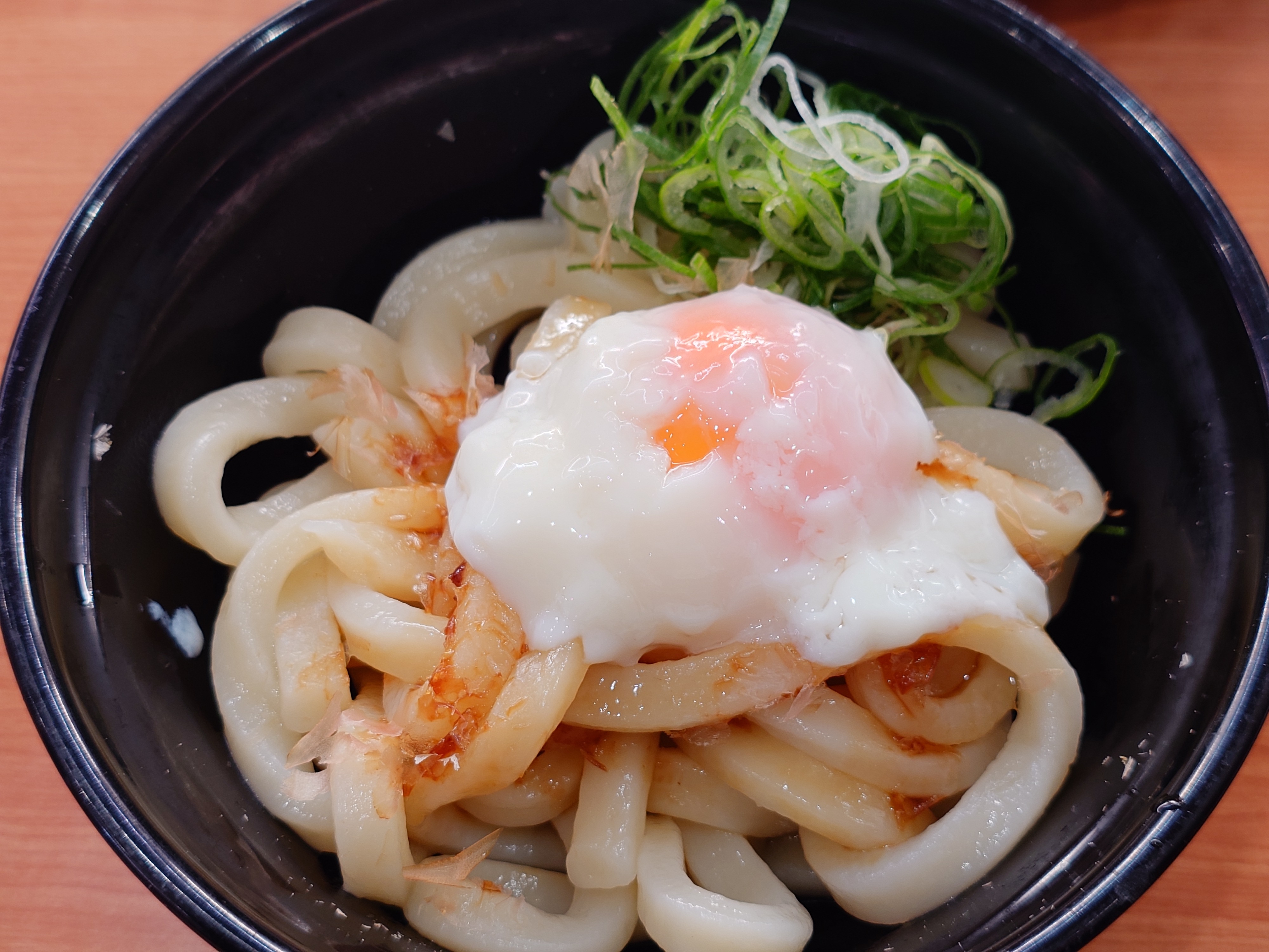 問題の極太うどんは2種。釜玉と釜揚げを選べるようだ。価格は公式HPだと前者が600円、後者が540円となっている。しかし店舗によって価格が異なるもよう。私の行った店舗では両方とも10円高かった。