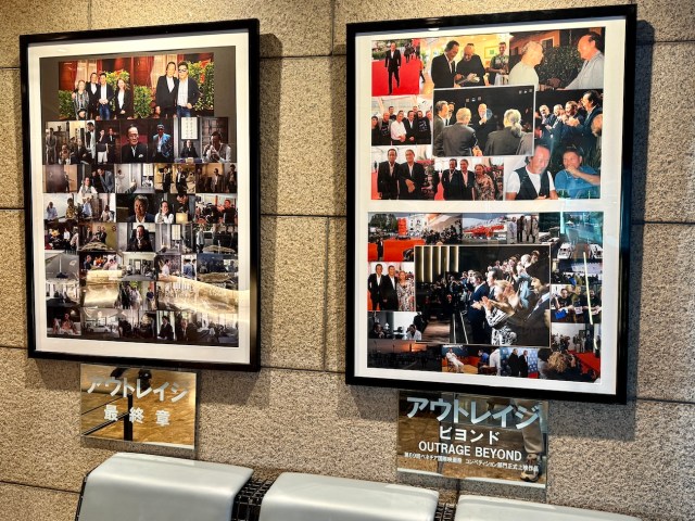 廊下やレストランなど、至るところにアウトレイジ……「さらば全員悪人」「最終章」「ビヨンド」とシリーズ総出である。