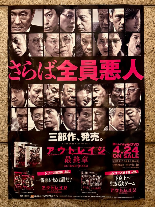 チェックイン時から薄々気づいていたが……なぜフロントに『アウトレイジ』のポスターが貼ってあるのだろうか。それも1枚や2枚どころではない。